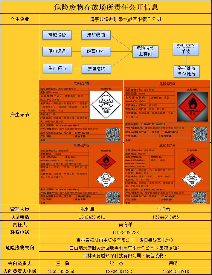 危險廢物存放場所責(zé)任公開信息
